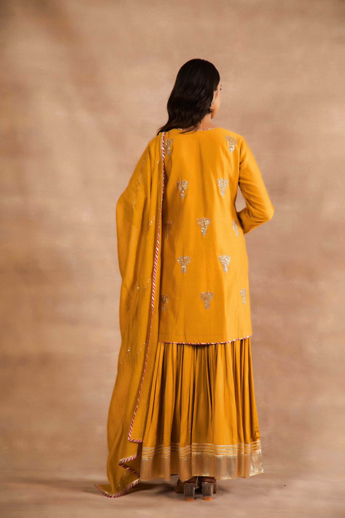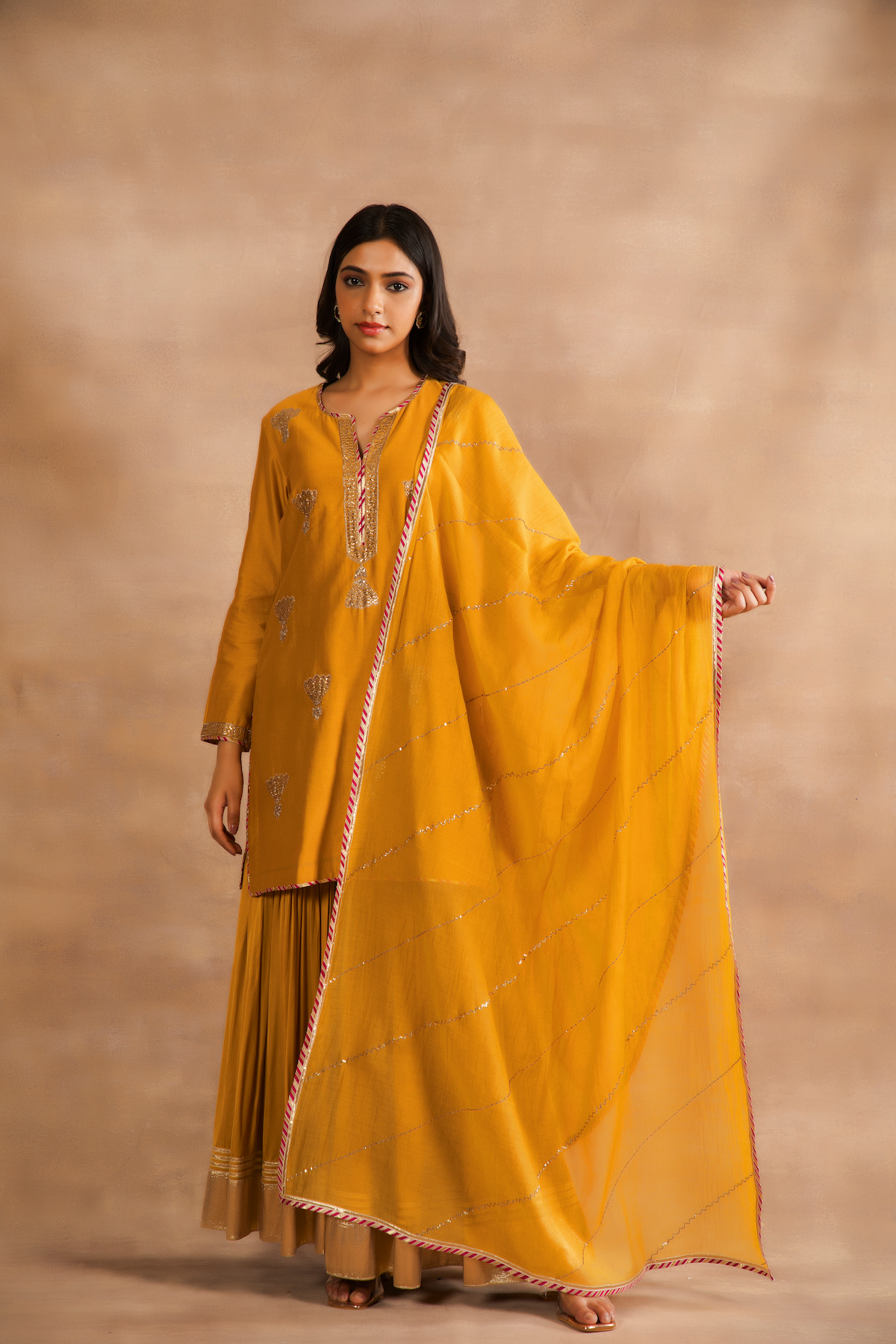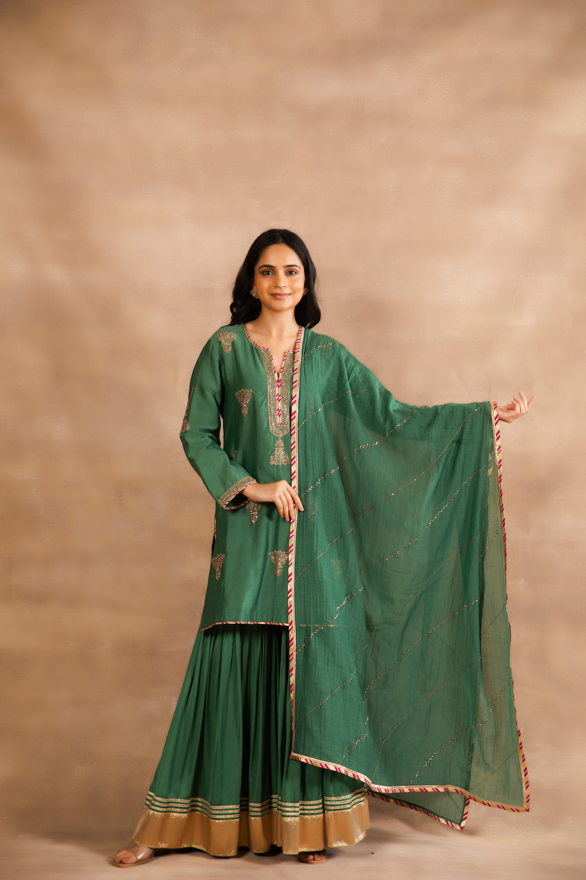 Dupatta is Chanderi with hand dabka work.