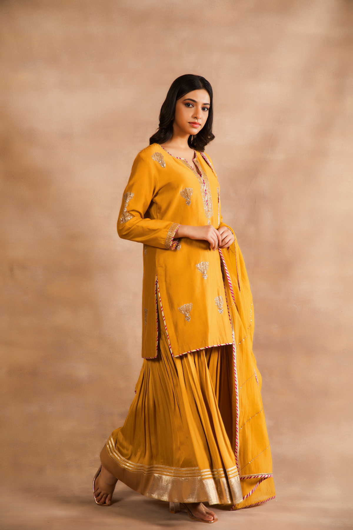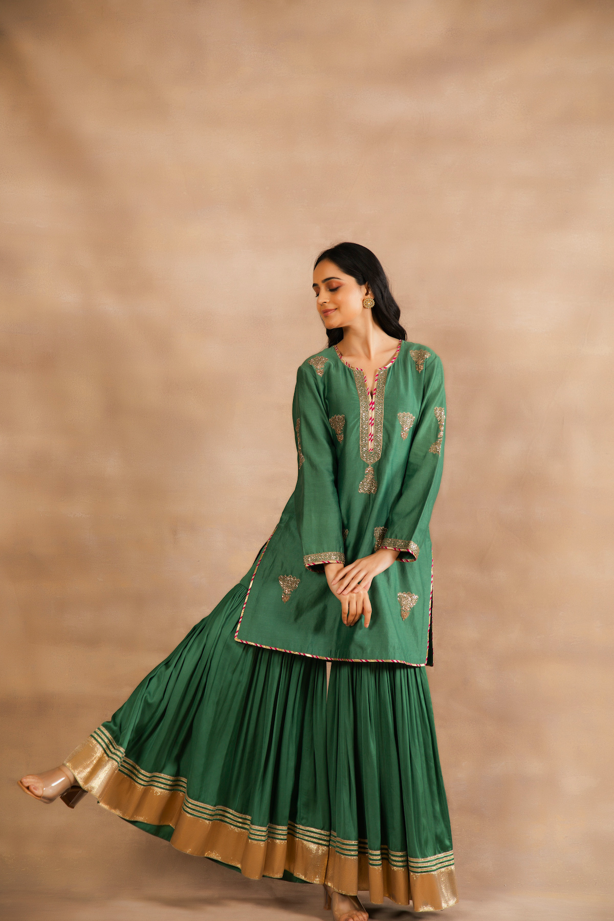 Satin modal Sharara with gota laces on the border.